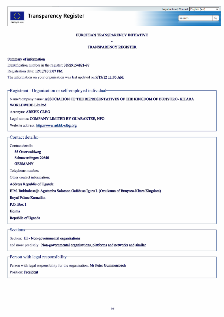 LEGALITY / REGISTRATION - European Commission / Transparency Register